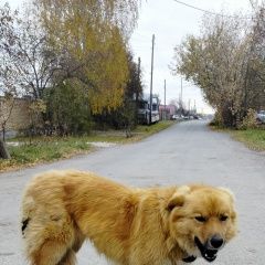 Найдена собака молодая рыжая сучка, с ошейником, не агрессивная, к себе не подпускает, второй день на одном месте.