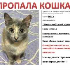 Пропала кошка прошу, помогите найти кошку, любая инфор