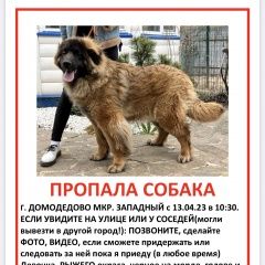 Еще ищем Помогите найти. Собаку, Леонбергер девочка РЫЖЕГО ОКРАСА С ЧЕРНОЙ МАСКОЙ с клеймом ALM….. Вознаграждение.. Снимите видео или фото, очень прошу Уже может быть в любом городе (возможно вывезена и удерживается кем то кто не знает о том что её ищут) пропала 13 апреля в четверг в Домодедово, микрорайон Центральный пробегала по Ул Коломийца в районе д 30 по дороге автомобильной и побежала в сторону заправки СТинвеСТ. Может есть очевидцы? Прошу отозваться. Важна любая информация Собаку пока не нашла. Смотрите пожалуйста по возможности и если кому не сложно на улице, в интернете. разошлите по знакомым и группам. мб кто то есть кто ходит и ездит по лесам. Вдруг встретиться. или мб в другом городе у соседей появилась новая собака или в нашем городе