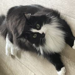 В районе улицы Восточная 19 пропала кошка, черно-белая, пушистая, с желтыми глазами, кастрированная, 6 лет, отзывается на кличку Кошка