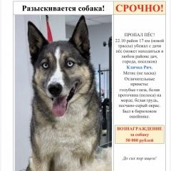 *Разыскивается собака * 22. 10 район 17 км (новой трассы) убежал пёс (может находиться в любом районе дач, города, поселков) Кличка Рич. Метис (лайка, не хаска) Отличительные приметы: голубые глаза, белая проточина (полоса) на морде, белая грудь, песчано-рыжий окрас. Был в бирюзовом ошейнике. За достоверную информацию о его местонахождении (фото) *вознаграждение* при необходимости конфиденциальность) Тел *..*.. Огромная просьба, если увидите, сразу позвонить (задержать), пёс добродушный Вдруг именно Вы или Ваш знакомый/сосед увидит Рича и он вернется домой