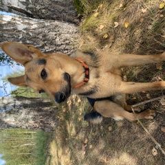 Найдена собака Истринский район, д. Максимовка, Полевшина, Андреевское. Молоденькая девочка «мини-овчарка». Очень умная, ласковая, нежная, но не из робкого десятка, с другими собаками, умеющая постоять за себя, послушная, знающая команды. Не отходит от человека даже в доме, боясь потеряться снова. При подзыве реагирует на сочетание букв «АС», «АКС»..
