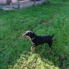Девочка, адресника и телефона нигде нет, спокойно дала снять ошейник, стойку держит, на команды отзывается, кажется прямо (по его словам) натасканная, норная, поджимает одну лапу.