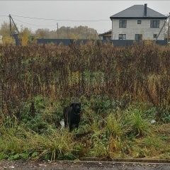 В Рождествено, около Пятёрочки замечена собака. Молодая, чёрная, очень пугливая. Похоже девочка, беременная, в тонком кислотном ошейнике. Хозяин отзовись