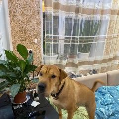 пропала собака, в районе Меланжевого комбината, конечная 8 автобуса, порода шарпей с питбулем, рыжий окрас, собака домашняя, очень пугливая, просьба всем помочь и сообщить по номеру..