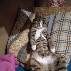 Беляшик нашёлся на 9 день, отловила на 10 день. Лечили лапку 7 месяцев. Теперь он домашний кот. Передаёт всем привет +2