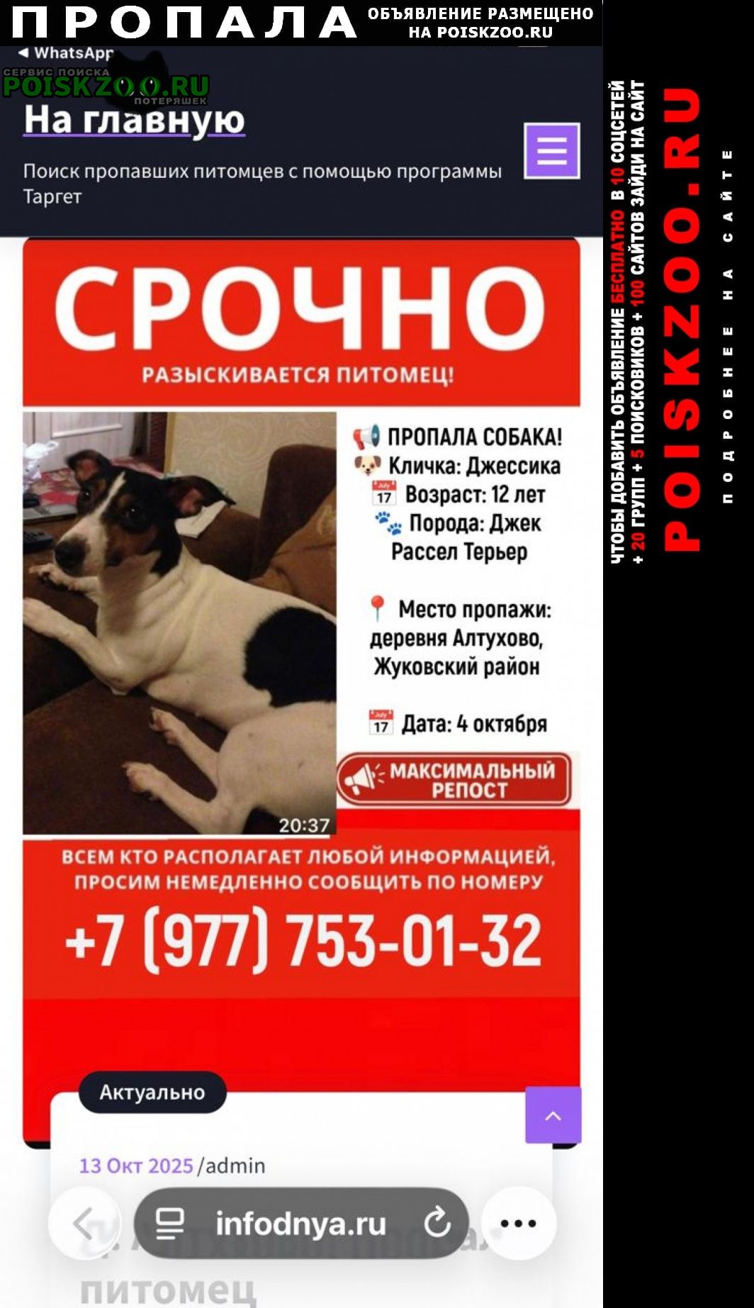 Контакты можно посмотреть по ссылке: https://POISKZOO.RU/191302