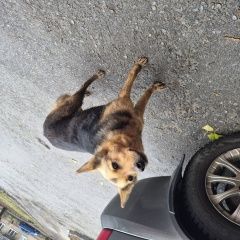 Бегает на ктз. Была в ошейнике, добрая, знает лифт, выгул и команды:сидеть, лежать, лапу. Бегает вокруг домов, ищет хозяина. Девочка.