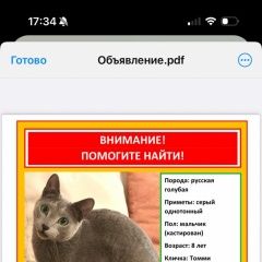 7 декабря 2025  34945  247 Пропала кошка Луховицы (Москва и Московская обл.)