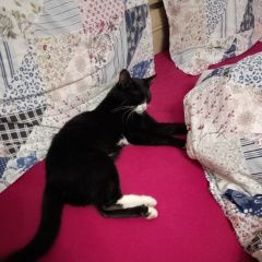 Найден котик чёрно-белый глаза жёлтые очень ласковый, кастрирован, чистый, домашний