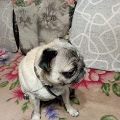 Найден мопс (девочка). Был привязан к дереву на протяжении 6 часов у дома 33 корп 2 ул арх. Власова г. Москва