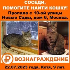 29 августа 2023  37057  1126 Пропала кошка Москва
