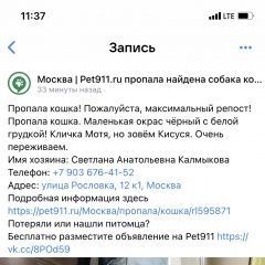 Пропала кошка митино кршка Москва