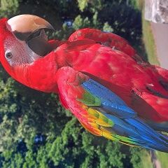Улетел Красный ара 8 июля от д. 2 ул. Окружная. 10 июля его видели в сходненском ковше. Пожалуйста сообщите его мосто нахождения.