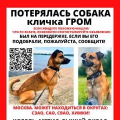 Северное Тушино Путилково Химки Южнле Тушино 24. 08. 2023 с передержки на улице Вилиса Лациса 3к1 убежал пес по кличке Гром На данный момент ничего не известно о местонахождении, только неподтвержденные сигналы по Алешкинский лесу. Гром неконтактен с незнакомыми людьми, боится больших собак. Поэтому очень просим, не пытайтесь поймать Просим всех, кто заметит его или владеет информацией позвонить по номерам телефонов из объявления Его очень ждут домой Помогаю информационно