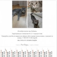 Спасибо большое, за то что есть такие сайты. Пусть все питомцы найдутся ,а бездомыши обретают дом, всем мира и добра. Кот нашёлся, удалите, пожалуйста объявление. +4