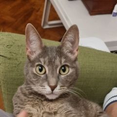 ИСА, 4 года, гладкошерстная, чипированная. Окрас как на фото, светло-серая в сероватую полоску. Сама мелкая, большие забавные уши. Очень дружелюбная к людям, но могла испугаться сейчас. Убежала из дома Кошурникова, 10, 1 подъезд, 1 августа. Помогите найти, пожалуйста. Будет вознаграждение. Если видели или приютили, позвоните, пожалуйста.. telegram @KainRamon