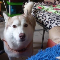 Девочка хаски убежала на даче снт, дружба, советский район глаза янтарный, очень добрая хорошо идёт на контакт с людьми