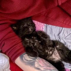 Котёнок, девочка, 2 месяца. Полностью чёрного окраса. Убежала из квартиры 20 мая. Пожалуйста, если видели, сообщите