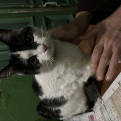 Нашли кошку, чистая ласковая домашняя, пошла за нами, ее временно приютили, на ней ошейник серый