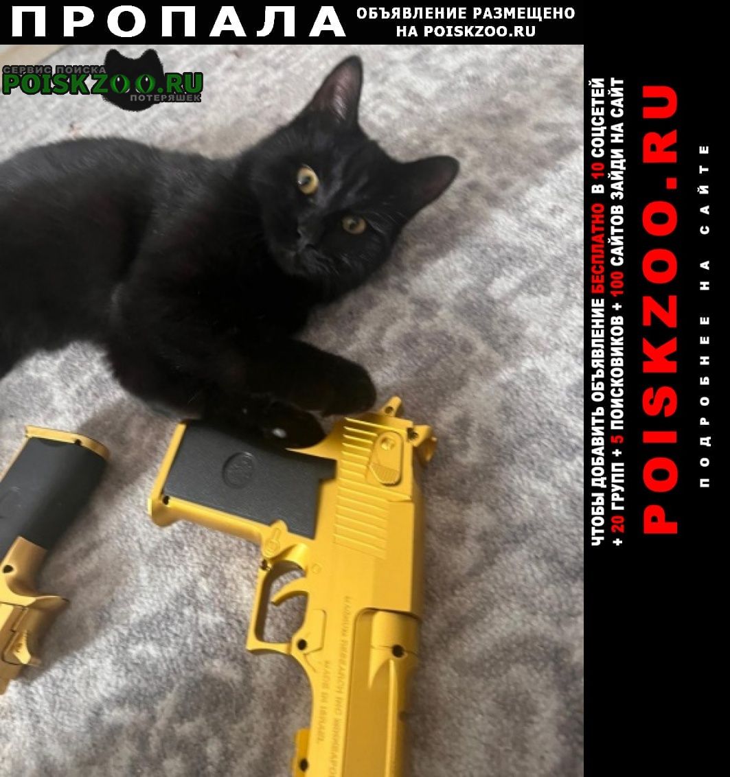 ПРОПАЛА КОШКА, ЧЕРНЫЙ ОКРАС, КЛИЧКА ИЗЯ, на вид 5-6 месяцев, БЫЛ ОДЕТ СИРЕНЕВЫЙ ОШЕЙНИК С КОЛОКОЛЬЧИКОМ,