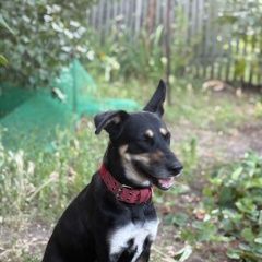 Пропала собака «Марта». черно рыжий окрас. особые приметы красный ошейник, левое ухо поднято, правое опущено, родинки на обеих щеках. Нашедшим просьба обратится по телефону..-Николай
