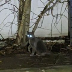 У парковки магазина Верный на улице Демьяна Бедного, 27 к2, найдена кошка, серо-синего цвета, чистая, боится людей и улицы, возможно выпрыгнула у кого-то из машины, ночью оставили ей немного еды и видели её на решётке с левого бока от входа в магазин на парковке, фото получились только такие