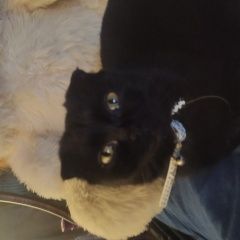 Пропала чёрная вислоухая кошечка в белом ошейнике