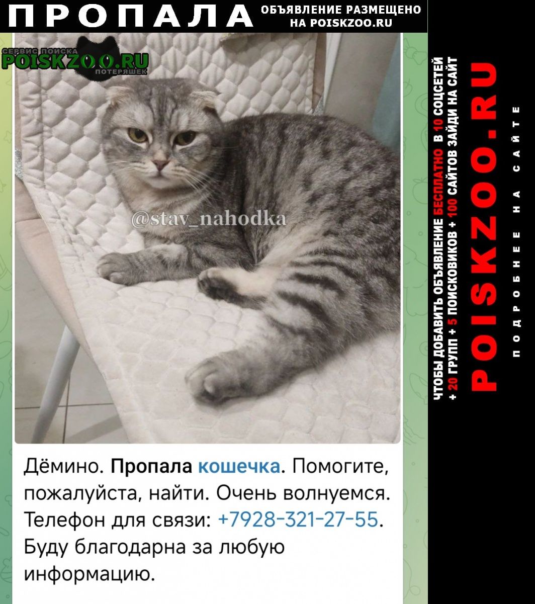 Дёмино. Помогите найти кошечку. Серая, вислоухая. Пугливая. Ушла гулять и не вернулась. Тел..