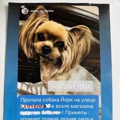 Пропала собака Йокшерский терьер мини на улице Савченко 16, 15 октября. Всем кто видел или знает сообщите пожалуйста