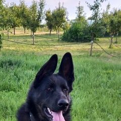Годовалая сука немецкой овчарки чёрная, ноги с подпалом. В чёрном ошейнике. Может находиться в районе х Новолакелемоновка - Новобессергеневка