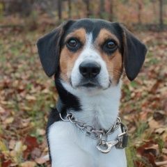 черно-белый, рыжие пятна на морде. собака небольшая, в холке 40+/- Отзывается на кличку Рокки или Рок