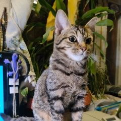 Найдена молодая кошечка во дворе пер. Трудолюбия, 35, гор. Тверь Чистенькая, ручная. Людей не боится, активно идет на контакт, игрива. Окрас серый в черную полоску. Взяли домой до момента обнаружения Хозяина. Дома немецкая овчарка и еще 2 кошки, оставить себе не можем. Особая примета - с левой стороны усы частично обожжены.