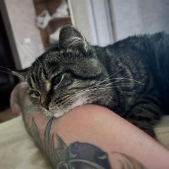 Беляшик нашёлся на 9 день, отловила на 10 день. Лечили лапку 7 месяцев. Теперь он домашний кот. Передаёт всем привет +2