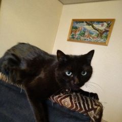 07. 06 из дома по адресу Нерчинская 52 пропал кот. Выпрыгнул с 1 этажа. Кот домашний, на улице никогда не был. Без ошейника. Окрас черный, на пузике местами единичный белый пушок. Кличка Эшли, 10 лет. Если кто-то видел или забрал себе позвоните или напишите по номеру телефону, пожалуйста. Очень прошу помочь вернуться котику домой.. Екатерина